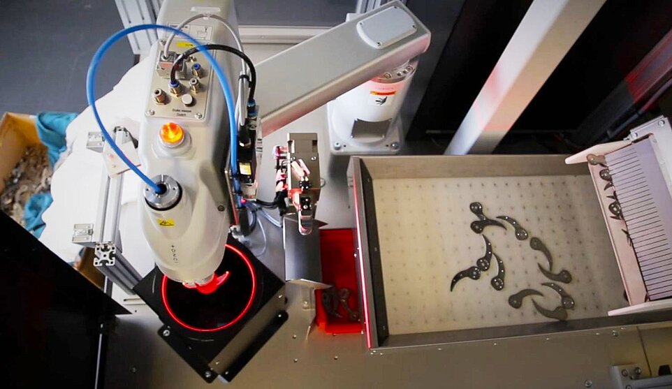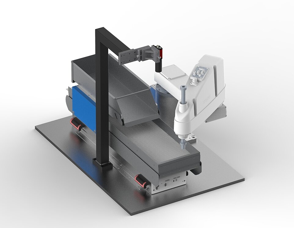 Sie haben Schüttgut - wir die Lösung! Die universelle Teilezuführung besteht gerade mal aus 3 Komponenten: Vision-System, Roboter und Fördereinheit. Der schlanke Aufbau spart Platz, Entwicklungszeit und Kosten und besticht durch Flexibilität und Zuverlässigkeit. Durch die Wahl von passender Fördereinheit und Robotertyp können Teilegrössen von kleinsten Uhrenteilen bis hin zu grossen Medizinalimplantaten verarbeitet werden. Der Roboter koordiniert den Ablauf zwischen Bildverarbeitung, Handling und Zuführung. Über das Benutzerinterface des Roboters kann das gesamte System autonom gesteuert und koordiniert werden. Eine teure SPS erübrigt sich. Das System erfüllt zudem die hohen Ansprüche der Pharma Branche (Bsp. FDA - Richtlinie 21 CFR Part 11).
